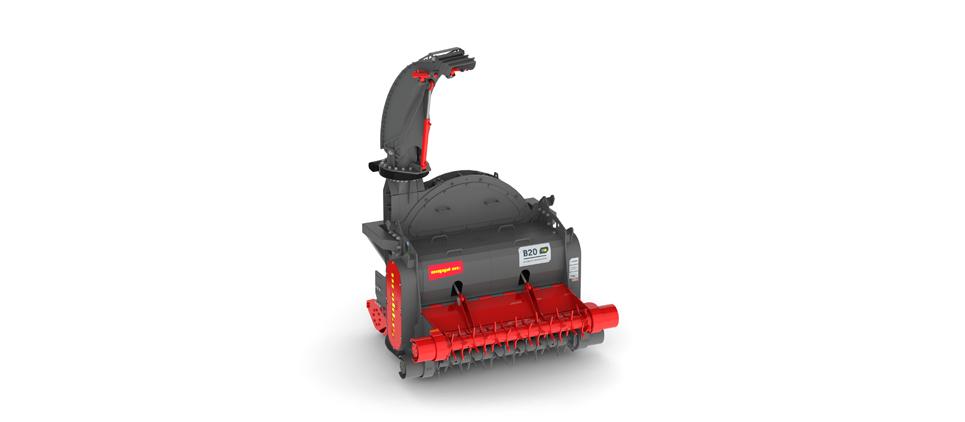 B20 mulčuje kríky a drevo do priemeru 20 cm vďaka výkonnému, agresívnemu rotoru s patentovaným systémom pevných nástrojov SEPPI M. SEPPI B20 zbiera biomasu z povrchu vďaka dvojitému zbernému zariadeniu. Zberné rotory ľahko prenášajú surovinu na hriadeľ rotora pre prvú fázu mulčovania. Štandardne je vybavený rotorom RIC – Radial Interference Cut (patent SEPPI M.), horným zberným rotorom, motorom a reguláciou prietoku. Následne výkonný, špeciálne navrhnutý diskový sekáčik s nožmi z HSS ocele rozdrví materiál na jemnú frakciu, ktorá sa okamžite vysáva a vyhadzuje cez vyhadzovací žľab umiestnený na jednej strane traktora. SEPPI B20 je mulčovač 4 v 1: zbiera-mulčuje-drví-prepravuje.